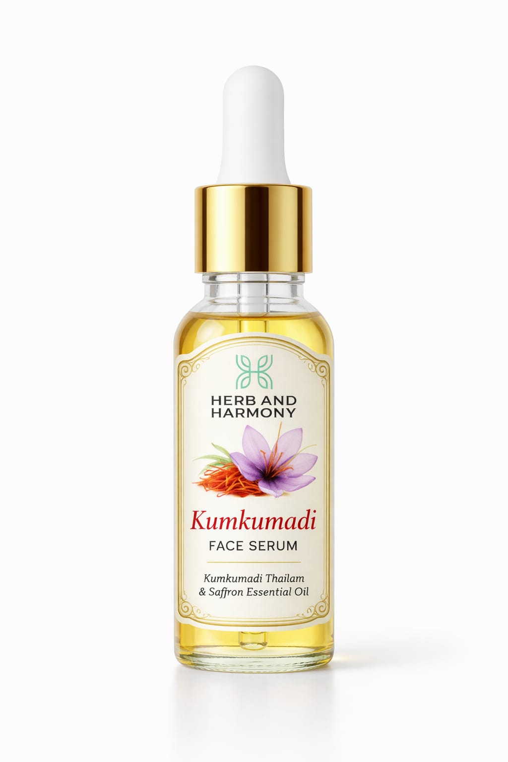 Kumkumadi Radiance Serum is a luxurious Ayurvedic-inspired facial serum designed to enhance natural skin glow, improve texture, and support healthy, radiant skin. Crafted with the timeless beauty secret Kumkumadi oil, this lightweight serum delivers deep nourishment while keeping the skin fresh, hydrated, and luminous. The formulation blends the traditional benefits of Kumkumadi oil and saffron essential oil with modern skin-hydrating ingredients like hyaluronic acid and vegetable glycerine, helping the skin retain moisture and maintain a smooth, supple appearance. The serum absorbs quickly into the skin, making it ideal for daily use without leaving a greasy feel.